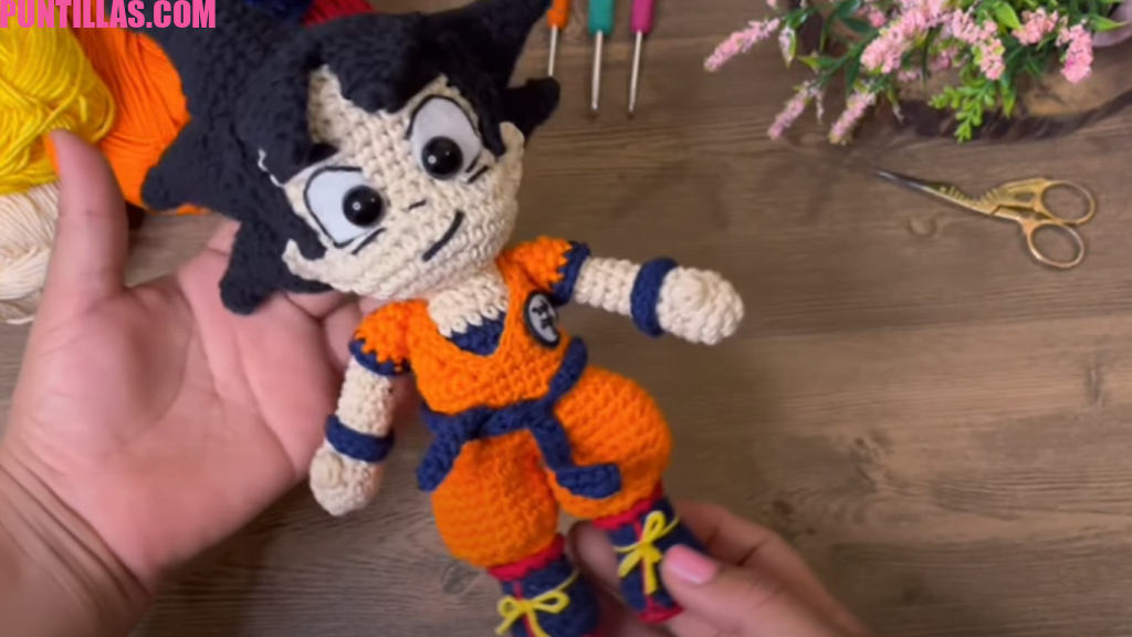 - ¿Cómo agrego el cabello característico de Goku al amigurumi?