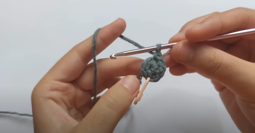 Para comenzar, haz un anillo mágico. Este método es esencial para asegurar que el centro del amigurumi esté bien cerrado.