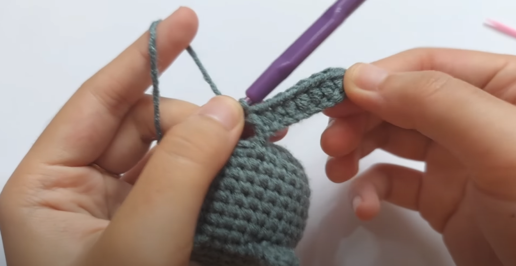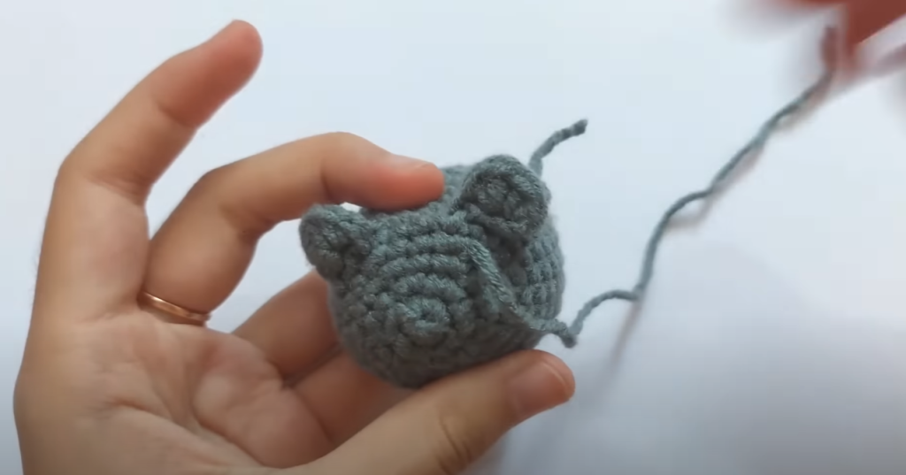 Repite para hacer la segunda oreja y cóselas en la vuelta 5 o 6 del cuerpo del gato.